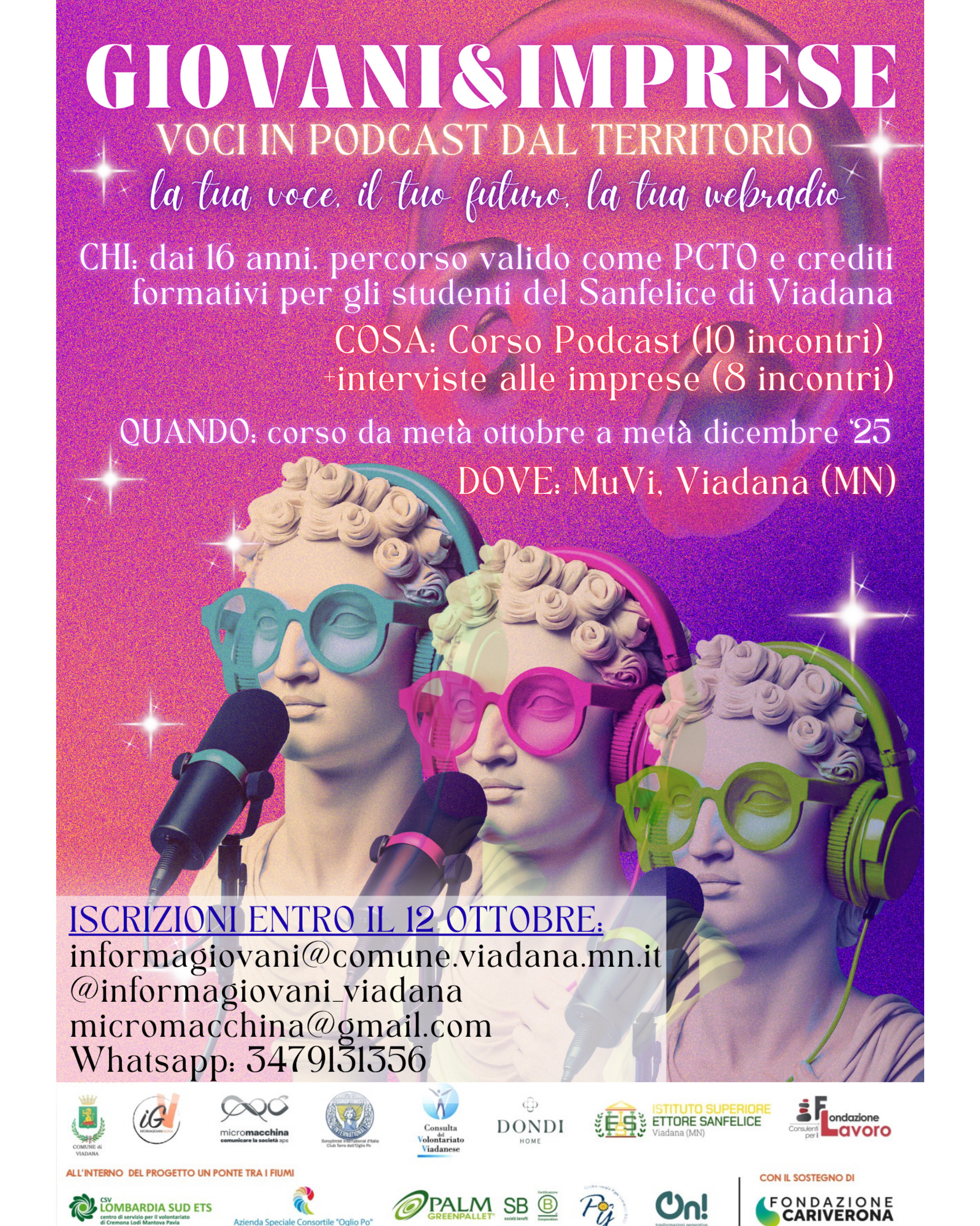 Al via un innovativo percorso di comunicazione sociale e territoriale che mette al centro i giovani dell’Oglio Po e il loro rapporto con il mondo del lavoro. Con il progetto “Giovani & imprese: voci in podcast dal territorio” studenti e studentesse, ma anche giovani in cerca di occupazione, avranno l’opportunità di raccontare il tessuto produttivo locale attraverso la creazione di podcast originali e coinvolgenti. Allo stesso tempo gli imprenditori avranno la possibilità di condividere le proprie esperienze, contribuendo a costruire un dialogo autentico con le nuove generazioni.
