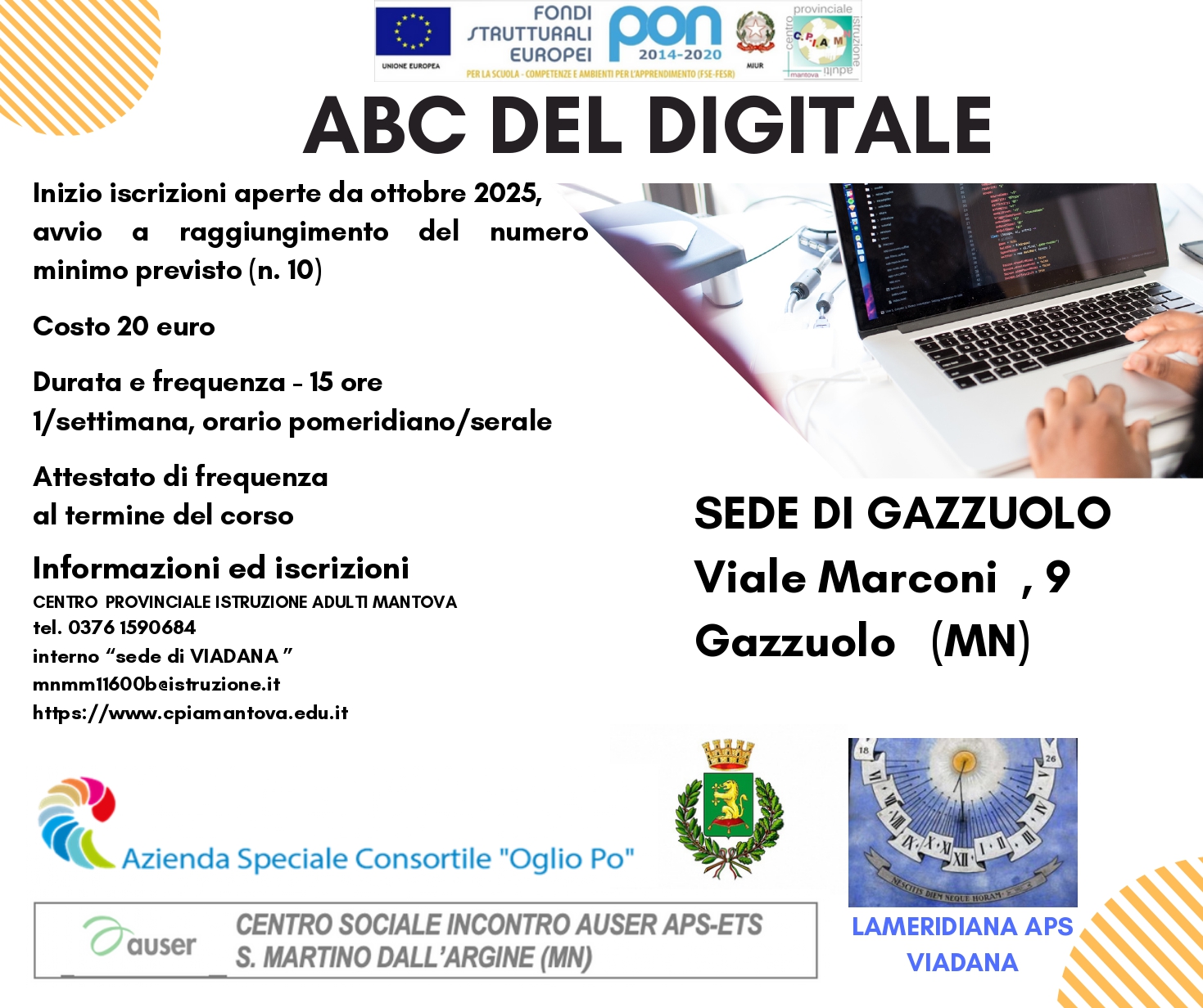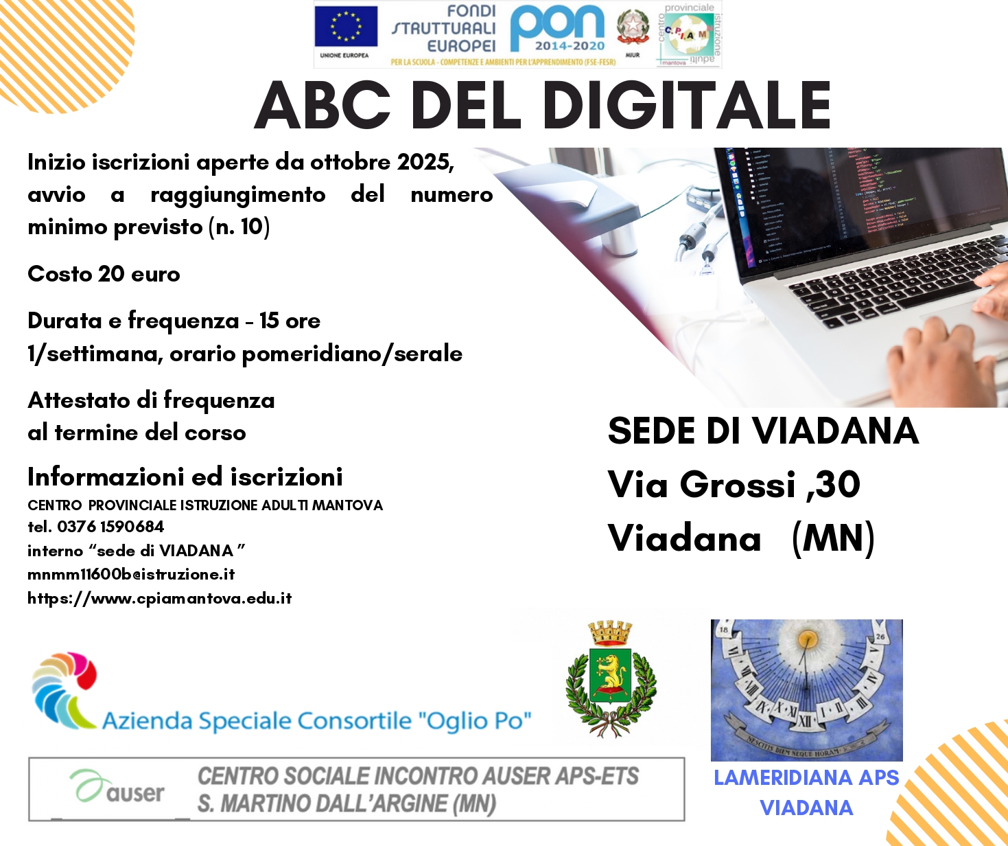 Sono aperte le iscrizioni al corso di informatica “ABC del digitale” un corso del Centro Provinciale Istruzioni Adulti di Mantova (CPIA) che ha l’obiettivo di offrire ai partecipanti i principali rudimenti e nozioni per poter gestire il proprio desktop del computer nonché le cartelle informatiche, ma anche approcciare word, excel, internet ed il sempre più importante tema della sicurezza e della identità digitale (spid, firma digitale e utilità per accedere ai principali servizi on line delle pubbliche amministrazioni).